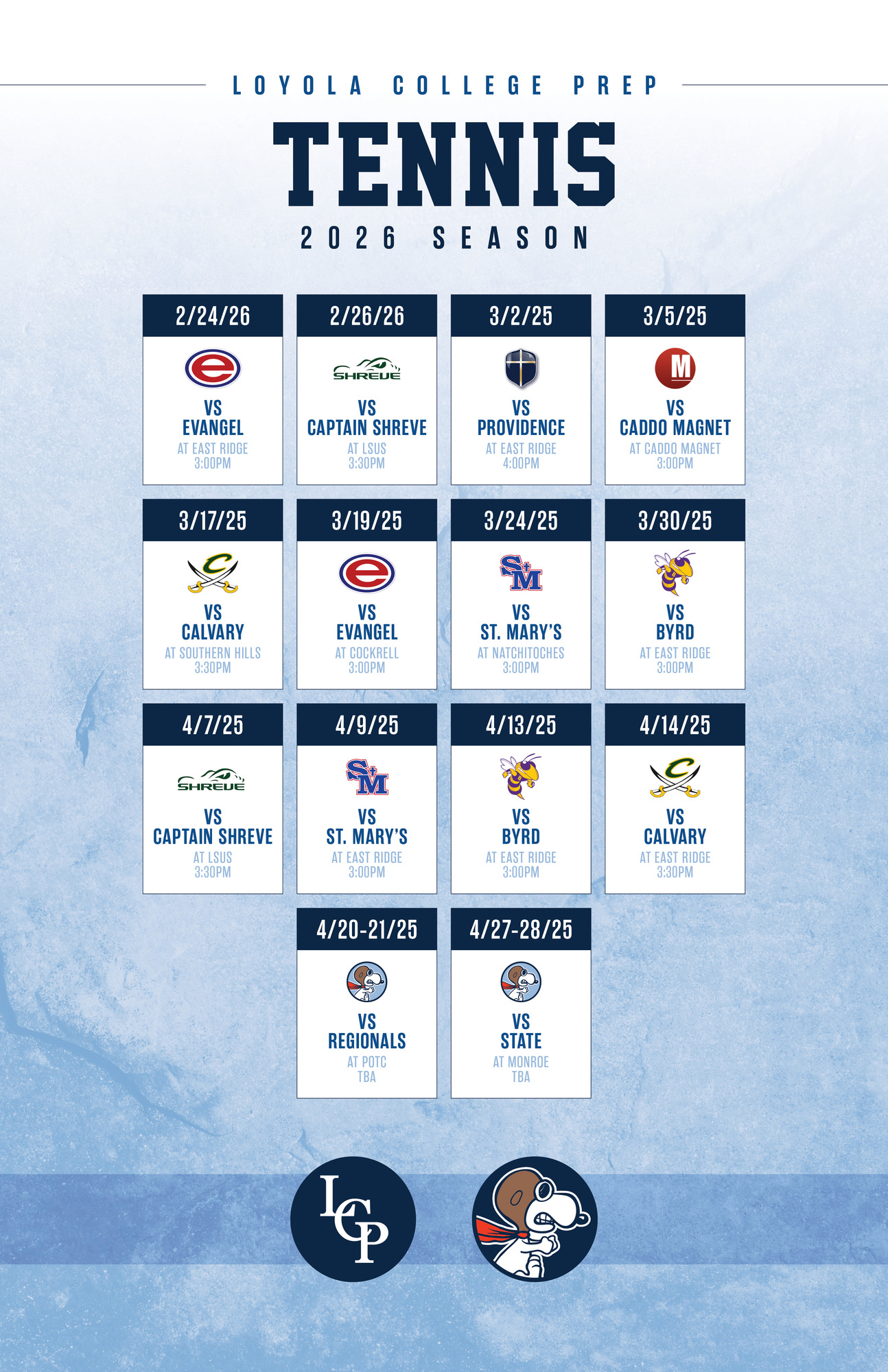 Loyola College Prep Tennis welcomes all students who would like to play matches against local schools on a variety of courts. The program is open to players of all levels of ability and opens the opportunity to tryout for the Regional Tournament at the end of the season.